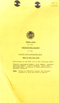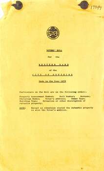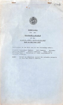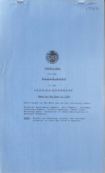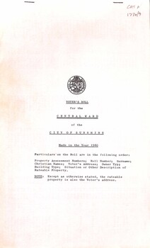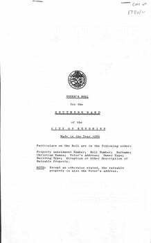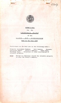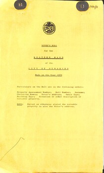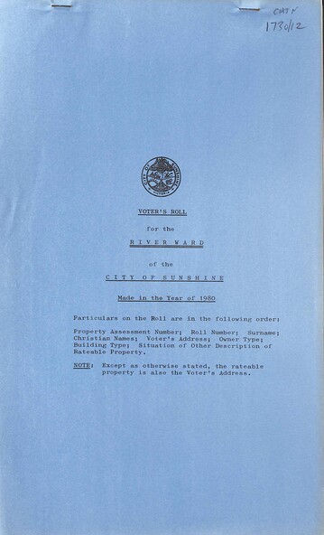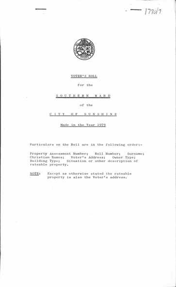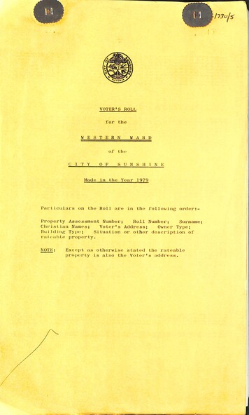 The Voters Roll provides a 1979 historical snapshot of the names and addresses of property owners in the Western Ward of the former City of Sunshine.