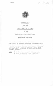 "Particulars on the Roll are in the following order:- Property Assessment Number; Roll Number; Surname; Christian Names; Voter's Address; Owner Type; Situation or other description of rateable property./NOTE: Except as otherwise stated the rateable property is also the Voter's address."
