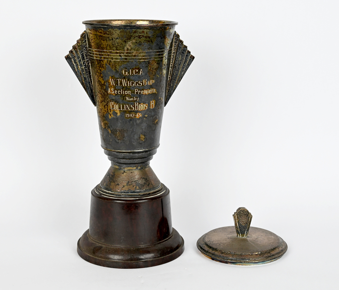 Cup, G.I.C.A.. Wt Wiggs cup A Section premiers won by Collins Bros. B 1942-43.