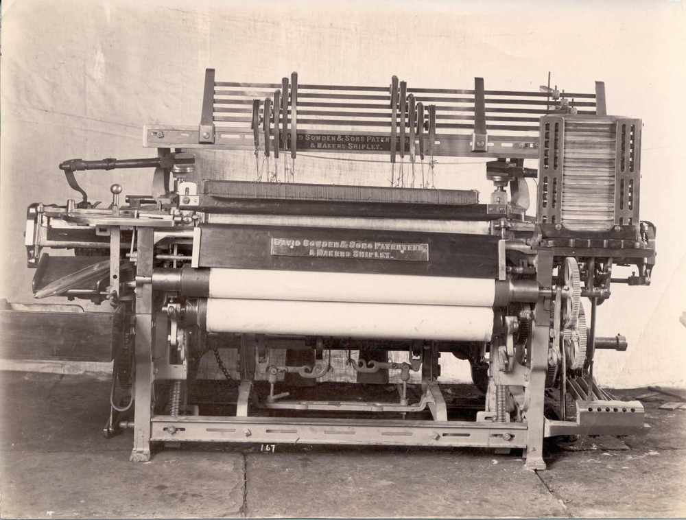 Photograph probably for promotional purposes, of a "J David Sowden & Sons" loom No167 (or 107). Photograph was among items from Yarra Falls Mill.