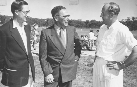 Written on back of photograph: "Ringwood Cricket Club - Left Cr. Reg Spencer, Mr. Lucas, Harry Munro on right."