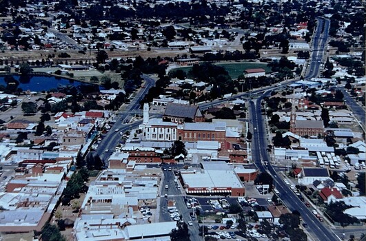 Photograph, Stawell Aerial View showing many of Stawell distinctive buildings 1998 -- Coloured