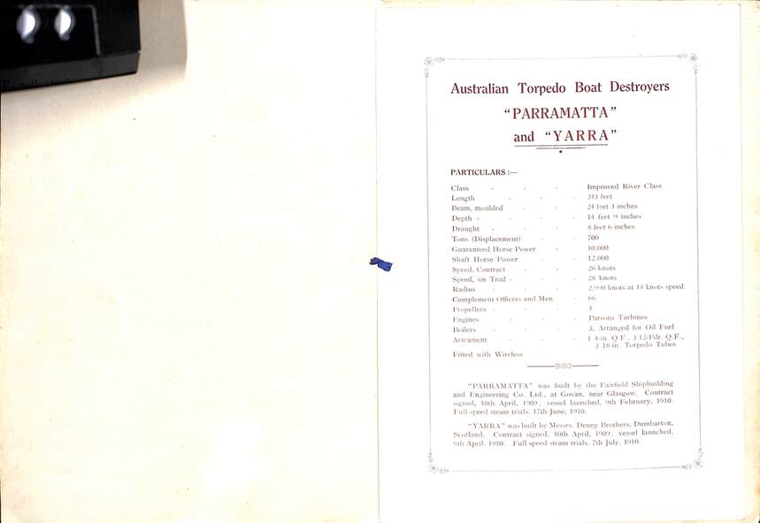 Book - Arrival of destroyers Yarra and Parramatta at Melbourne, 12 Dec 1910