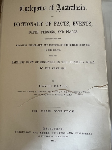 Book - Encyclopaedia of Australasia, David Blair, Cyclopaedia of Australasia, 1881