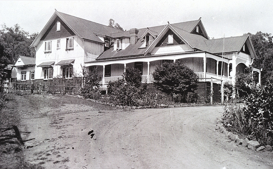A copy of a black and white photograph of Kooringa in Marysville. Frederick Webb commissioned the Cuzens Brothers to build his private house, 'Kooringa' in Sedgewick Street, Marysville in 1914.