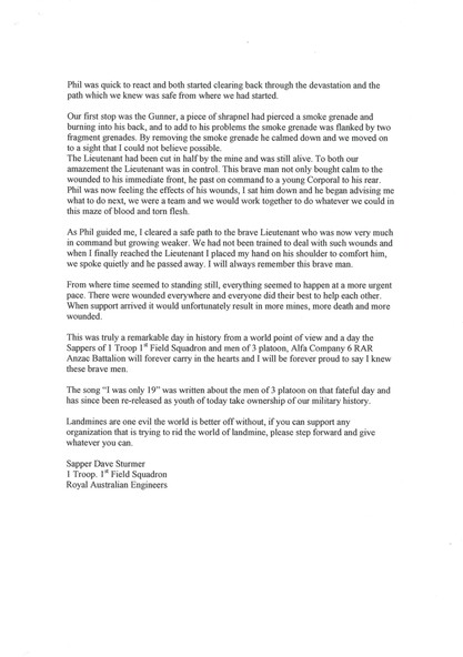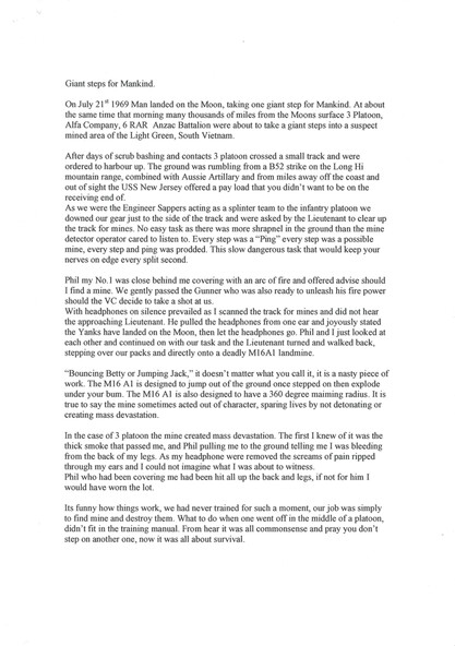 A copy of Giant Steps for Mankind where Sapper Dave Sturmer recounts an incident during the Vietnam war when he and the others in his platoon were searching for mines (M16A1 landmines) and many soldiers were injured or killed. The song, 'I was only 19' was written about the men of 3 platoon he states. See medial for more information.