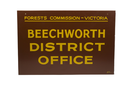 This sign proudly hung outside the Forests Commission Victoria (FCV) Beechworth office which is now site of the Forestry Heritage Museum.