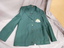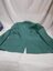 Dark green school uniform blazer size 15. Single breasted. Three dark green buttons. Breast pocket on LHS with white and green embroidered school emblem showing an emu and a kangaroo on either side of an open book with a golden three layered crown above it with two ribbons. Motto: OMNIA IN CHRISTO. Two pockets either side of front. Split at lower back. St Vincent College, Junortoun.