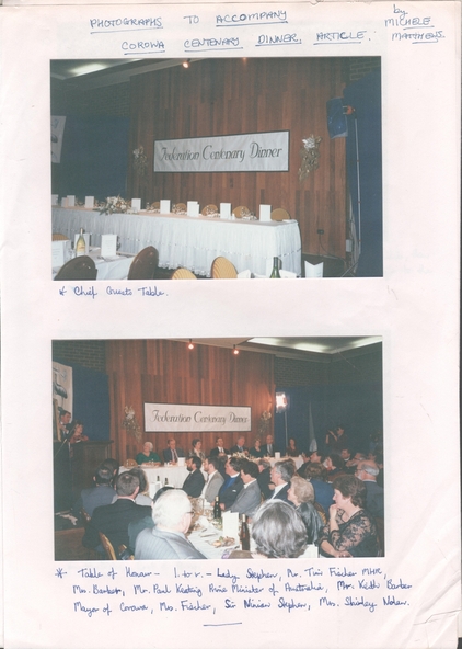 Seven handwritten sheets of lined paper stapled together. The article was written by Michele Maslunka-Matthews for the 1993 Bendigo Advertiser Supplement. The article followed Corowa Conference held from July 31 - August 1 1993 to commemorate the 100 years anniversary of the first Corowa Conference held in 1893. The article contains an examination of the background to the 1893 Corowa Conference, it's historical significance and the activities that were organized for the 1993 commemoration Conference. Includes references to photographs taken by the author during the 1993 Conference (11045.18).