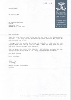 1. Letter of thanks for a Commemoration envelope featuring Sir John Quick.
