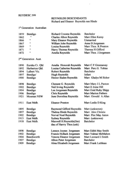 The document in this item is a list of descendants of Richard Reynolds and Eleanor Hinde. It includes places lived.