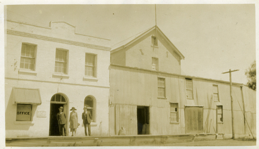 Photograph, c.1920 Front of Noske's Flour Mill C Media reuse Reuse this media Can you reuse this media without permission? Yes Conditions of use Public domain This media item is listed as being within the public domain. As such, this item may be used by anyone for any purpose. Attribution Please acknowledge the item’s source, creator and title (where known) Have a question? Contact Charlton Golden Grains Museum Inc Download Download image (jpeg) Historical information Noske's Flour Mill west end of High Street. Later to be the Egg Floor. Bought from Foremans c.1919. Ernest Richards(Mill Manager), Mr and Mrs J. Bartlett standing out side mill office. Physical description Standard black and white photo with white border Subjects charlton, business, noske's, flour mill, richards ernest, barlett j