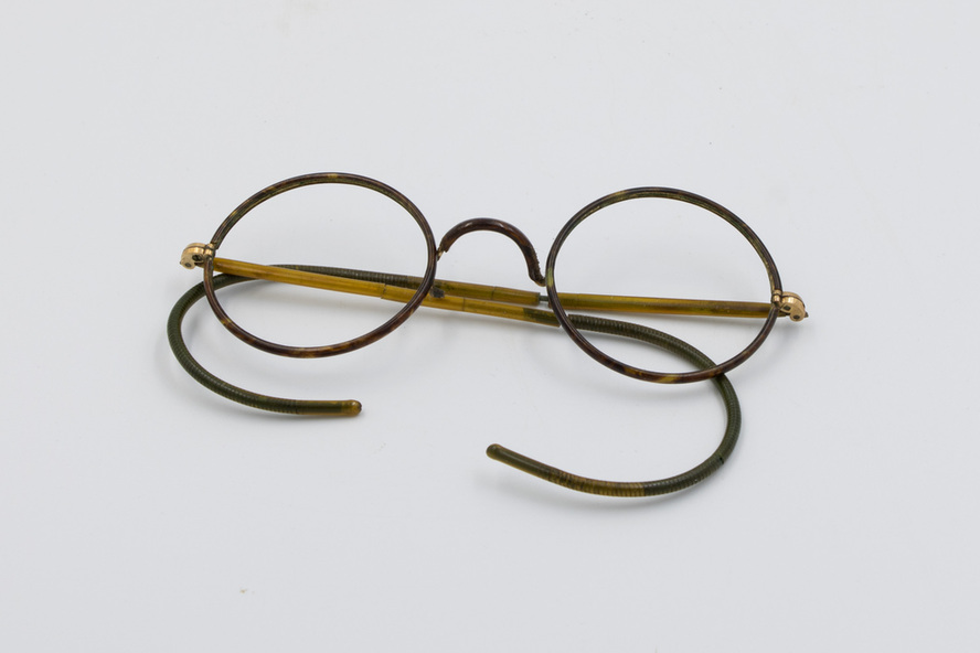 Glasses case and spectacles belonged to a WWI veteran, Arthur Ayres, who served at Gallipoli and the western front and was wounded at Passchendaele in 1917