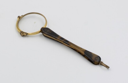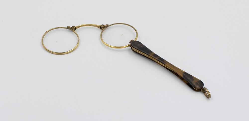 This pair of Lorgnette spectacles belonged to Nina Ayers (nee Casement) 1891-1972. She lived with her aunt, Blanche Casement (nee Balnarry) as a child after her mother died when Nina was seven. Her aunt would often take Nina to the theatre where these spectacles may have been used. Nina, in turn, gave the spectacles to her daughter Frances Ayers who later married the grandson of Carl Axel Nobelius.