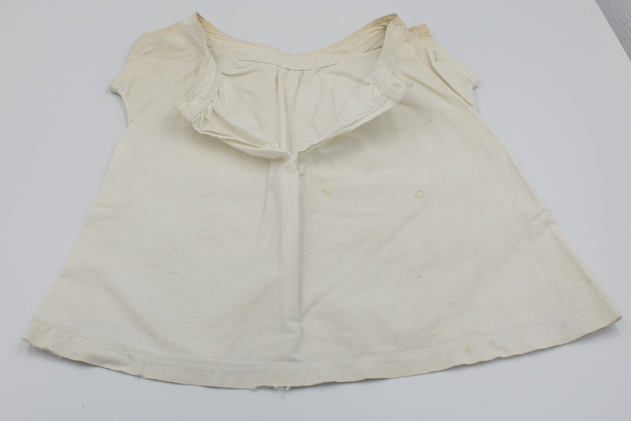 This baby bodice was created using machine and hand stitching, by Phoebe Lowell, a 13-year-old schoolgirl at St Michael's, St Kilda in 1916. It was purchased in the late 1990s by the donor who later moved to Emerald but, at the time, had a 2nd hand decoration shop in Camberwell when she purchased this as part of a group of garments which included bloomers, lace collars and cuffs, camisoles etc - all of which have been donated to the Museum. The donor was advised at the time of her purchase that the garments were over 100 years old although this baby bodice was made in the early 20th century.