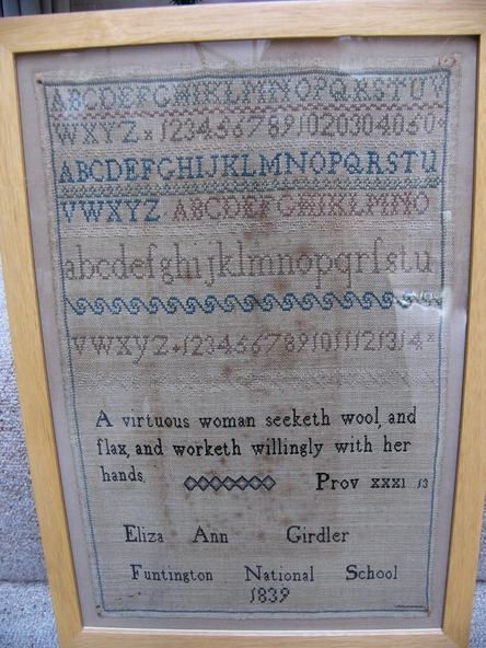 A virtuous woman seeketh wool, and flax, and worketh willingly with her hands. Prov XXX1 13. Eliza Ann Girdler. Huntington National School. 1839