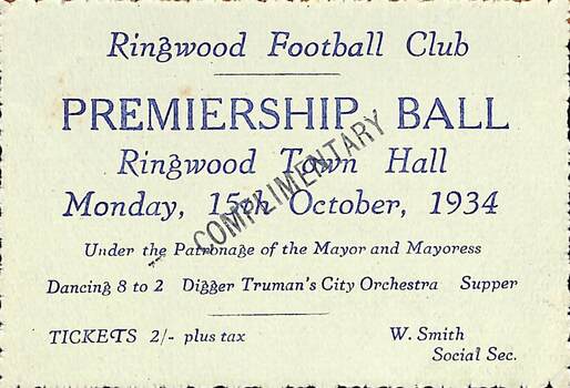 Under the Patronage of the Mayor and Mayoress, Dancing 8 to 2, Digger Truman's City Orchestra, Supper. Tickets 2/- plus tax. W Smth Social Sec.