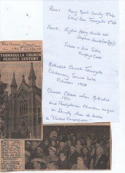 Newspaper Clipping, Centenary of Methodism in Tarnagulla, 1958