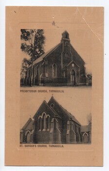 Postcard, Presbyterian Church and St Saviour's Church, Tarnagulla, c.1910
