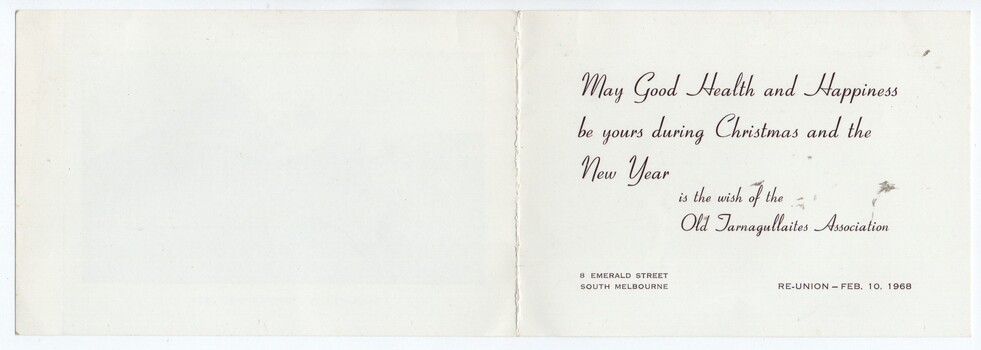 Christmas and Greeting Card, Old Tarnagullaites Association, 1968