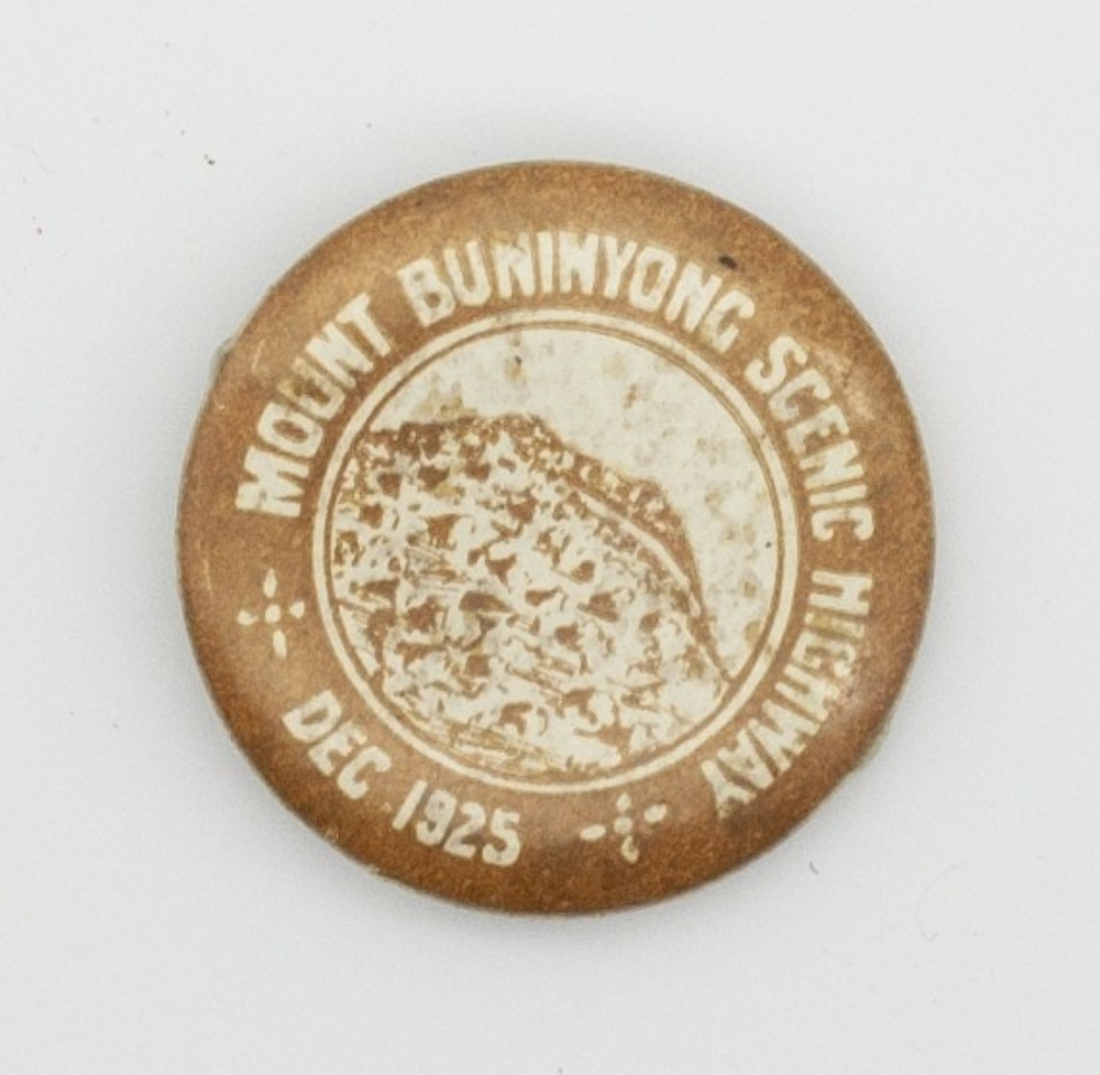 This badge commemorates the historic event of the first construction of a road to the summit of Mount Buninyong.