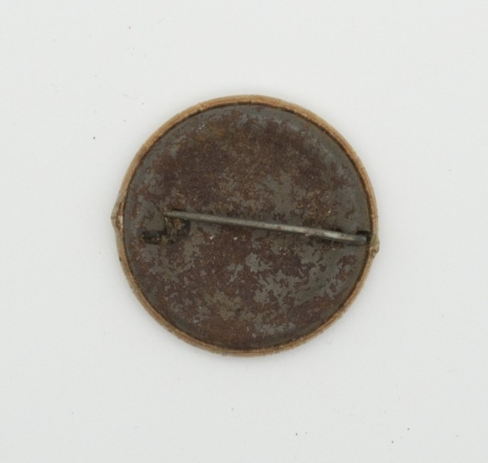 Metal badge with pin on rear with picture of the Mount Buninyong summit