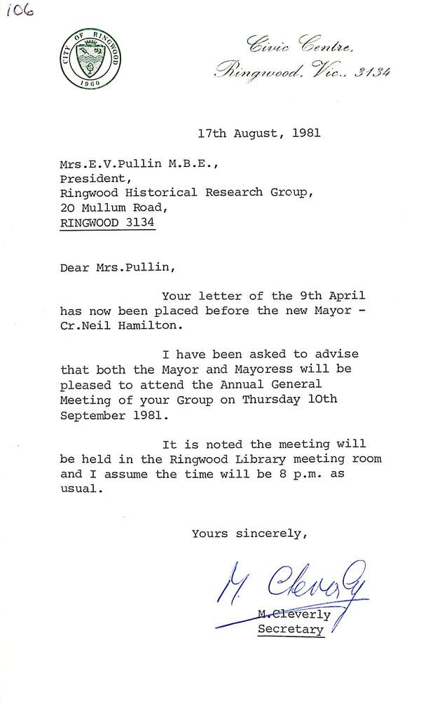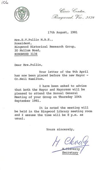 The AGM was to be held on Thursday 10th September 1981, at the Ringwood Library meeting room at 8pm