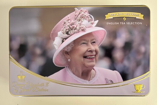 Commemorative New English Tea Selection Tin with tea bags, issued to celebrate the reign of Queen Elizabeth II