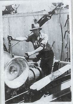 Alec Smith (Win May's father) operating machinery. circa 1940