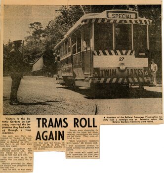 Members of the Ballarat Tramways Preservation Society took a tram around the Botanic Gardens tramlines to test them. This was a kilometre stretch of track. Only Society members were allowed on the tram. It is hoping to have the trams back in service on this section in the New Year.