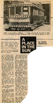 Newspaper - Newspaper - Clipping and Black & White Photograph, R Bridger Collection: Back on the tracks in Ballarat by Keith Dunstan, December 1974