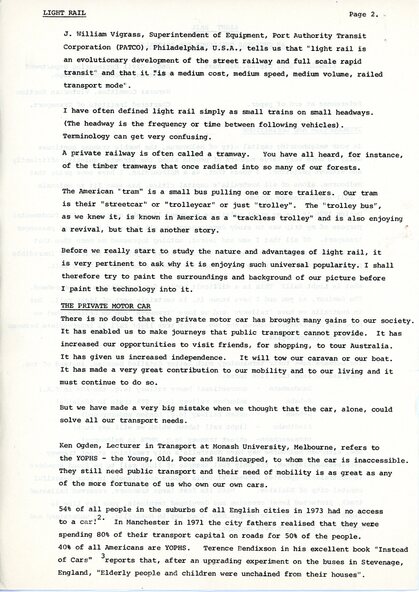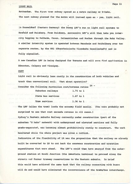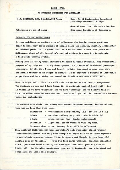 Document - Document - Discussion Paper, R Bridger Collection: Light Rail; An overseas Challenge for Australia