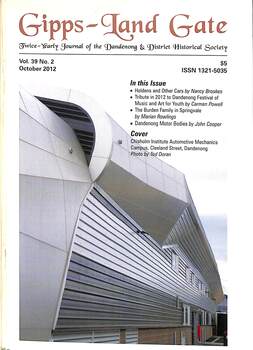A5 size publication of the Gipps-Land Gate, October, 2012 featuring an old picture of Dandenong on the cover.