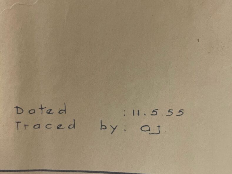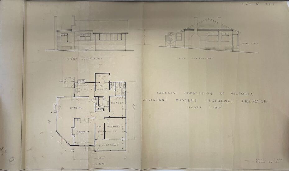 Traced Architectural plan for the Assistant Masters Residence with notes on the reverse side