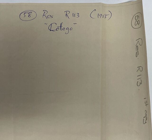 Dated 11.5.55, Traced by A.J. Scale 1in to 8ft. On the reverse: Res, R113 (1955) "Cottage"