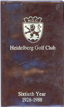 Plastic cover used for members' handbook at Heidelberg Golf Club. This cover was produced to celebrate the 60th anniversary of the Club.