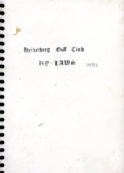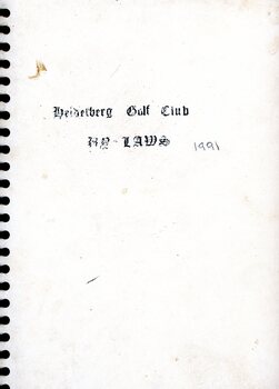 By-laws of the Heidelberg Golf Club, this version 1991. Contains by-laws relating to annual general meetings, Match, House, Membership and Ladies.