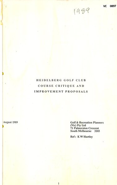 Administrative record - Report, Golf & Recreation Planners, Heidelberg Golf Club: Course critique and improvement proposals 1989, August 1989