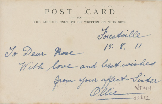 Believed to be Olivia Davidson (nee McPhaill) sister of Rose Davidson (2 sisters married 2 brothers) Sent from 'Forestville' Timbarra Rd Buchan South Victoria