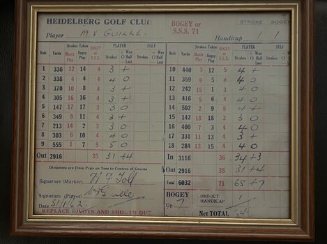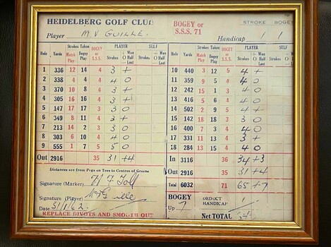 Card - Score Card (Framed), Heidelberg Golf Club, Max Guille Course record at Heidelberg Golf Club, 31/01/1961