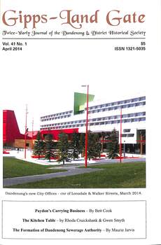A5 size publication of the Gipps-Land Gate, April, 2014 featuring an old picture of Dandenong on the cover.