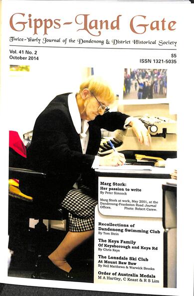 A5 size publication of the Gipps-Land Gate, October, 2014 featuring an old picture of Dandenong on the cover.