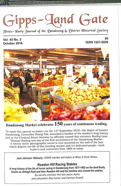 A5 size publication of the Gipps-Land Gate, October, 2016 featuring an old picture of Dandenong on the cover.