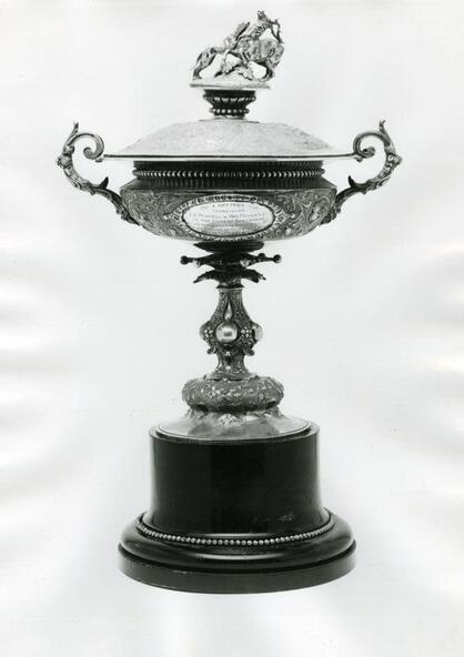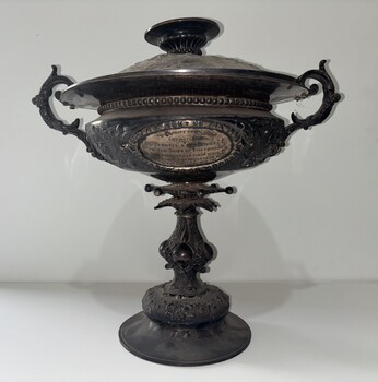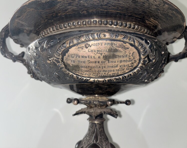 This silver cup was presented to the Shire of Braybrook by Cr. Albert George Pennell and his wife to commemorate their visit to the Borough of Maidstone, Kent September 1950.