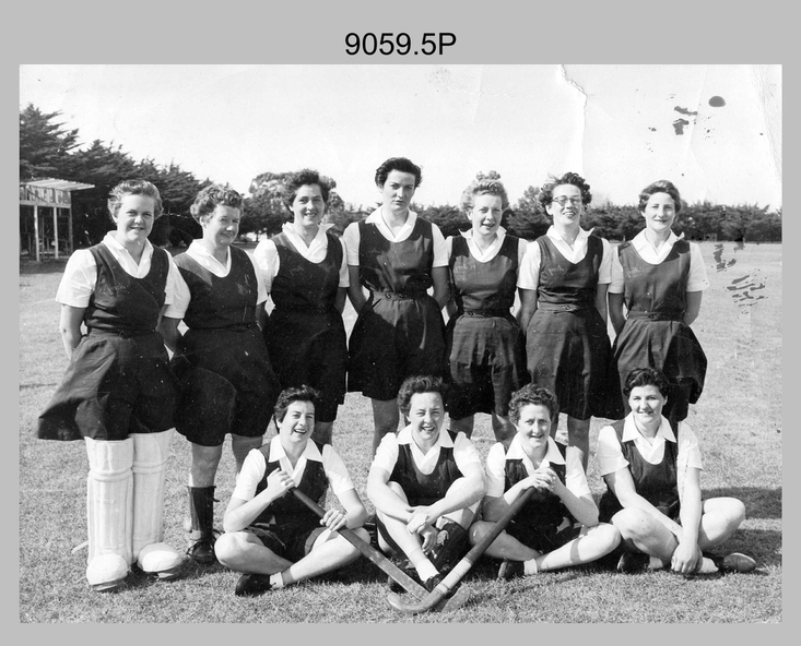 These eight photographs were taken at Bones Day, an annual sports competition between the Army Headquarter (AHQ) Survey Regiment and the RAAF School of Radio at Laverton circa 1961. The two units took turns each year to host the event. The day competition usually comprised basketball, cricket, cross country, golf, sailing, squash, softball, tennis, touch football, rifle shooting, tug-of-war and volleyball. The “big bone” trophy comprising a large bone from a beast housed inside a wooden framed glass case, was awarded to the winner of the day competition. The evening competition often included darts, carpet bowls, hookey, quoits and billiards/snooker. The “little bone” (a mounted chicken bone) was the consolation trophy awarded to the winner of the evening competition. The 3-hour bus trip for the visiting unit on their return was typically very raucous. The history of the Bones Day competition is best described in the booklet titled - Bones of Contention Souvenir Program. 1965. Refer to Item 6267.