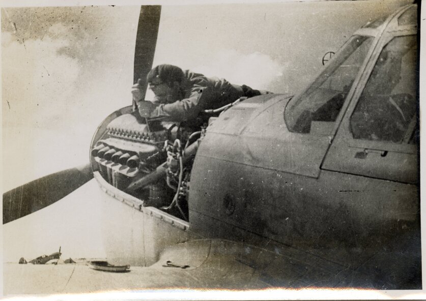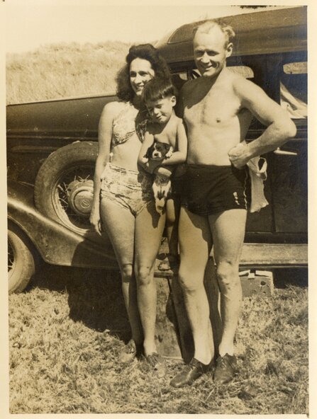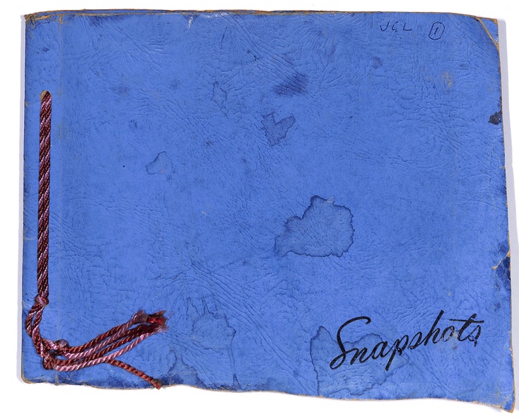 Blue cardboard photo album contains personal and service images 1935-1946