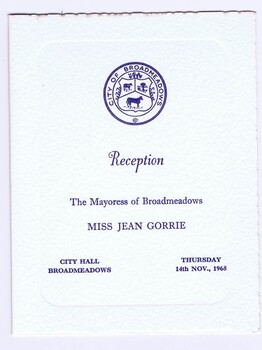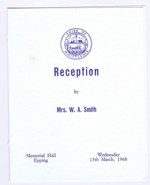 1. Program for Shire of Whittlesea Reception. 2. Program for City of Northcote Reception. 3. Program for City of Broadmeadows Reception. These functions were attended by Mavis Morgan.