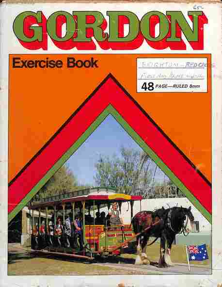 Prepared by David Frost using a Gordon Exercise book with a horse-drawn crossbench tram (destination of Bird Life Park - Gold Coast) and with most pages removed. One drawing dated 1955 and another 1957. Contents:
