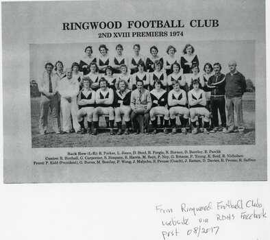 large B&W photo of the Premiership Team. Also a copy of another photo with names and Title taken from RDHS Facebook post.