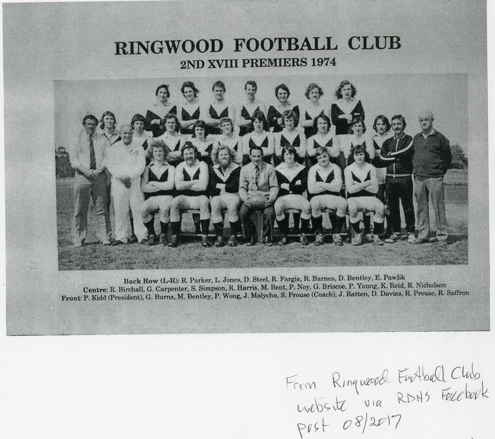 Front: P. Kidd (President), G. Burns, M. Bentley, P. Wong, J.Malycha, S. Prouse (Coach), J. Ratten, D. Davies, R. Prouse, R. Saffron